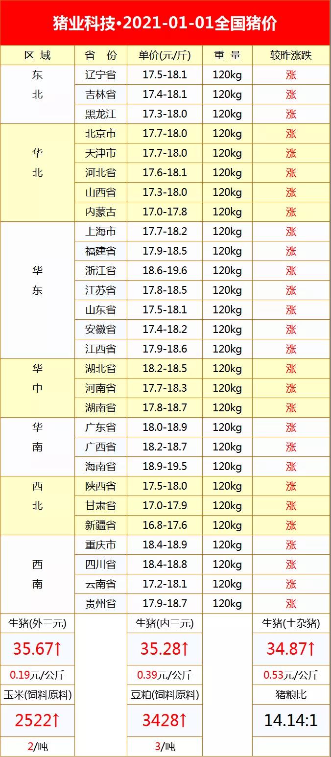 今日豬價(jià) 2021.1.1全國豬價(jià)