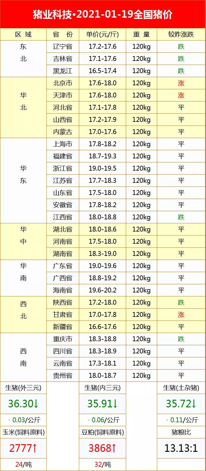 今日豬價(jià)?2021-01-19全國豬價(jià)